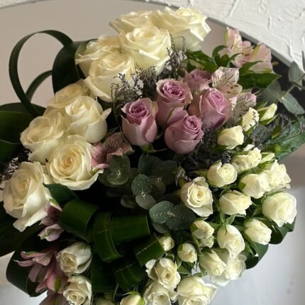 مزهرية ازهار السعاده اللطيفه مجموعه من ازهار البيبي روز والجوري والكليبتوس