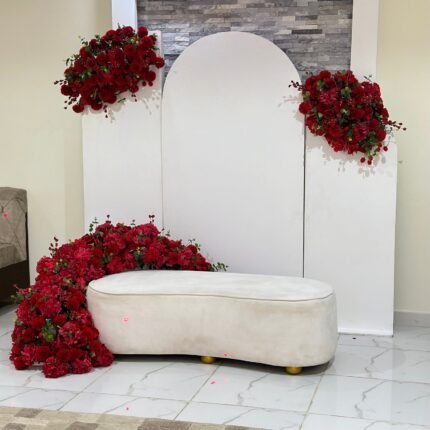 ورد احمر مع كرسي ابيض لطيف الحجز مسبق
