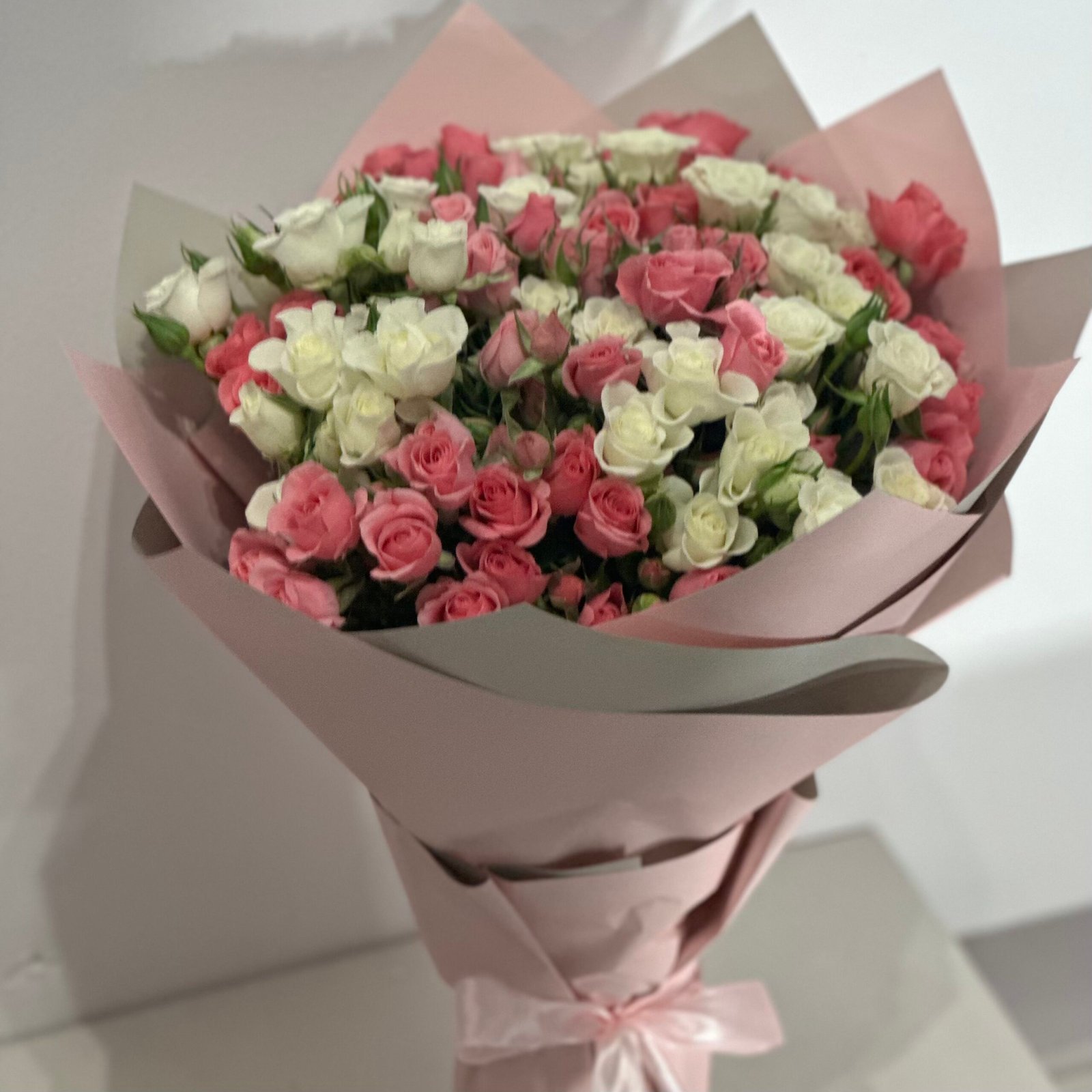 باقة ازهار بيسان الجميله مجموعه ورديه من ازهار البيبي روز بعدد 30 غصن