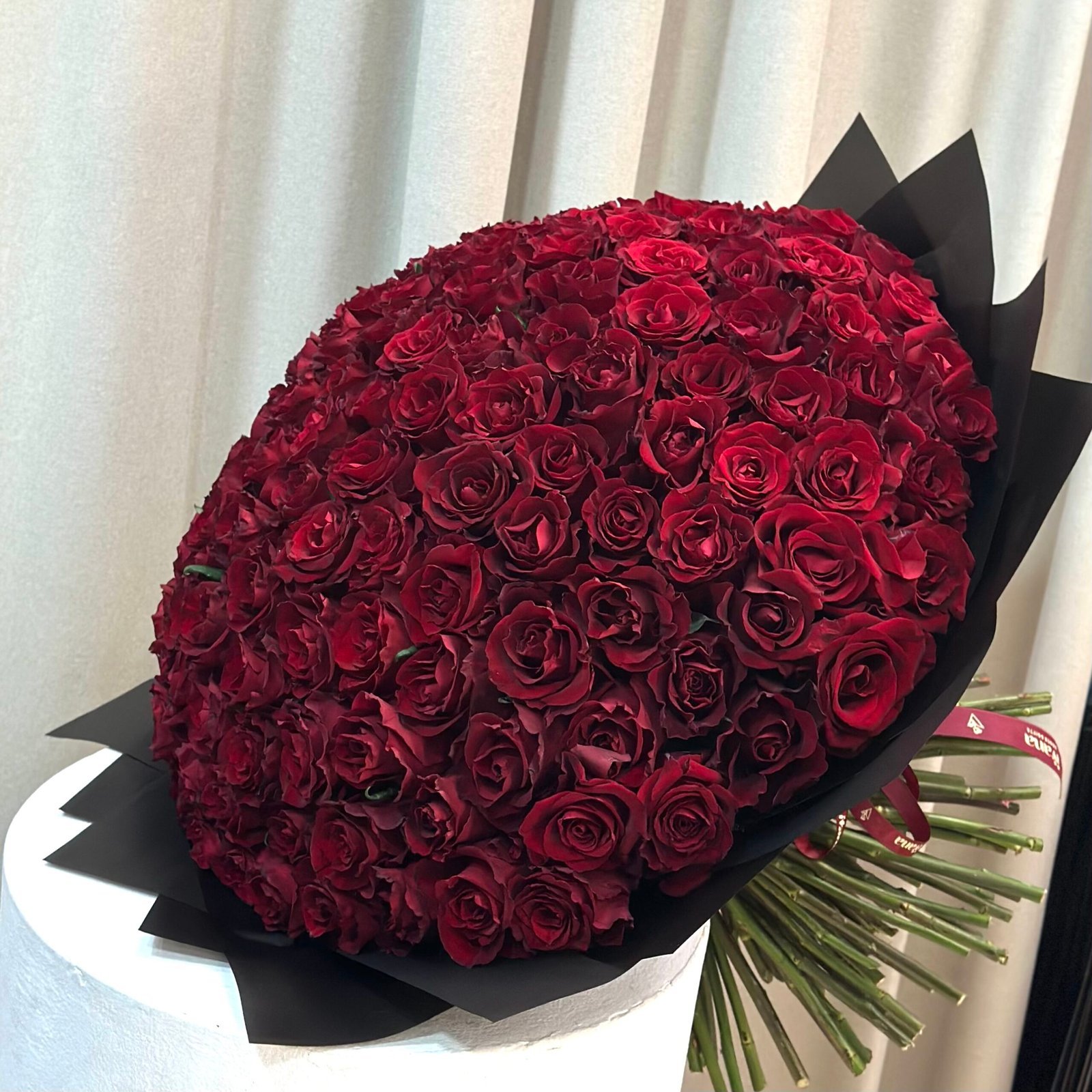 باقه مكونه من 150 ورده بتغليف اسود انيق