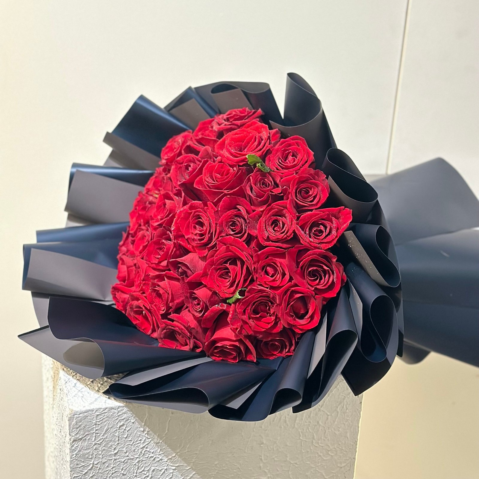 ورد من الجوري الأحمر بتغليف جميل وأنيق