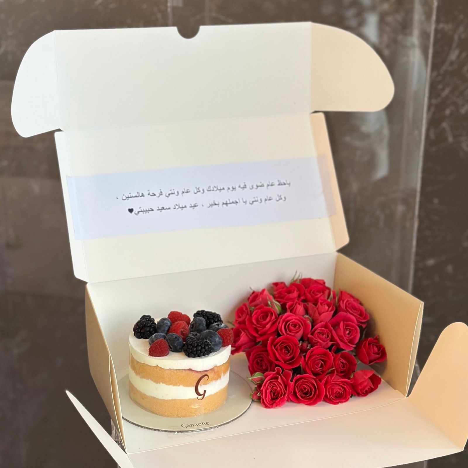 كيكتك ستصل إليك طازجة وجميلة تمامًا لمناسبتك. نوصي بأن يتم تخزين الكيك في الثلاجة قبل تناوله.